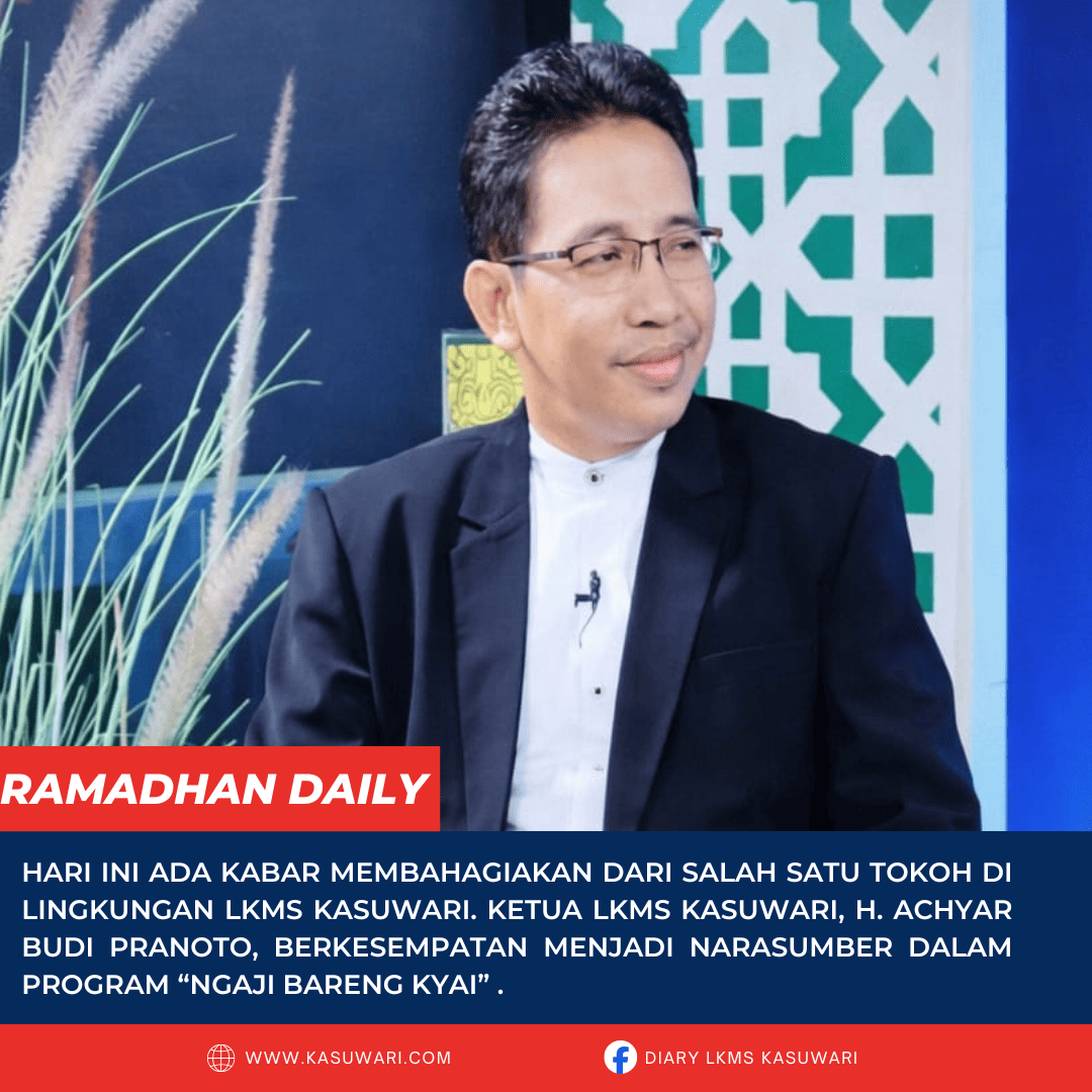 Kamis, 5 Maret 2026 Hari ini ada kabar membahagiakan dari salah satu tokoh di lingkungan LKMS Kasuwari. Ketua LKMS Kasuwari, H. Achyar Budi Pranoto, berkesempatan menjadi narasumber dalam program “Ngaji Bareng Kyai”. Dalam program tersebut, beliau hadir untuk berbagi pandangan dan nilai-nilai keislaman kepada masyarakat luas. Kehadiran beliau dalam forum dakwah seperti ini tentu menjadi kebanggaan tersendiri bagi keluarga besar LKMS Kasuwari, sekaligus menunjukkan bahwa tokoh-tokoh di lingkungan lembaga juga…