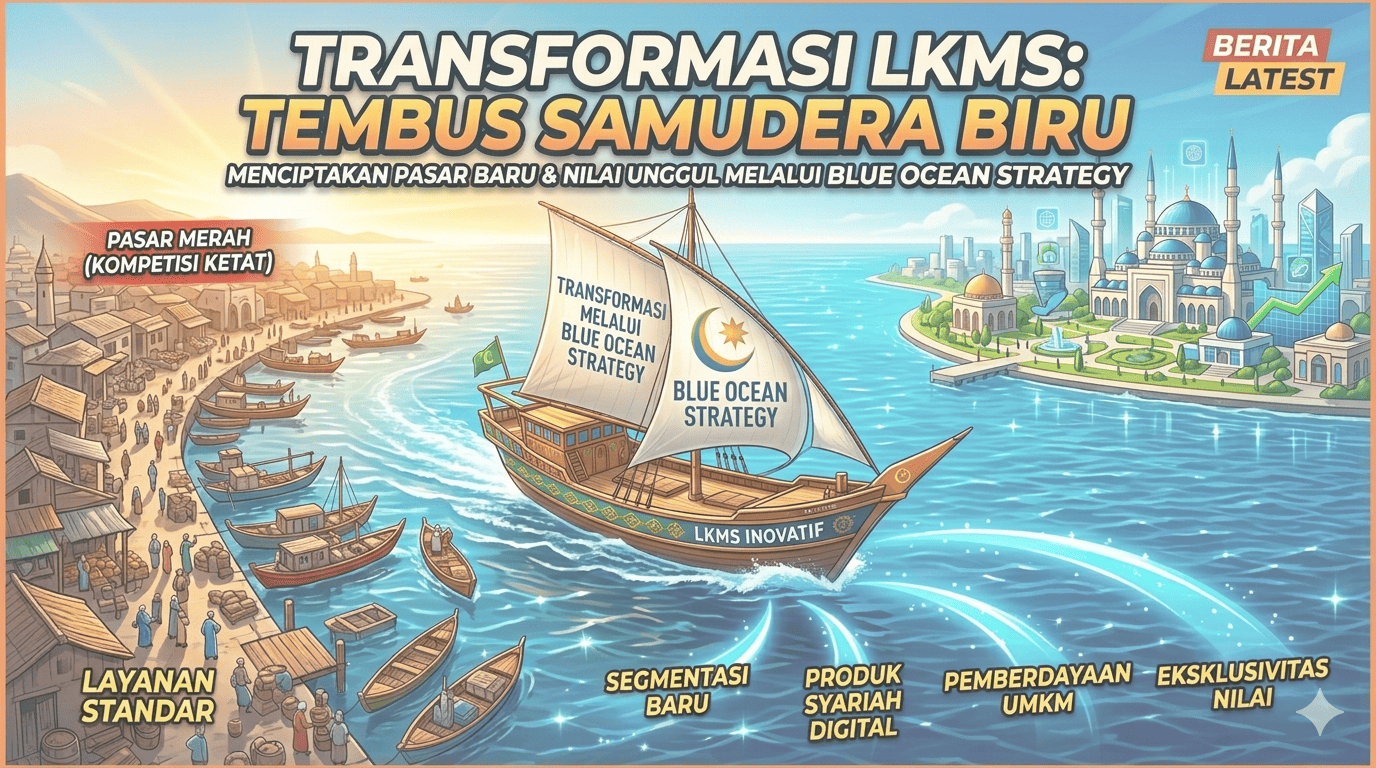 Lembaga Keuangan Mikro Syariah (LKMS) menghadapi tantangan kompetisi tinggi, margin terbatas, dan risiko pembiayaan. Pendekatan Blue Ocean Strategy menawarkan transformasi menuju penciptaan ruang pasar baru melalui inovasi nilai.